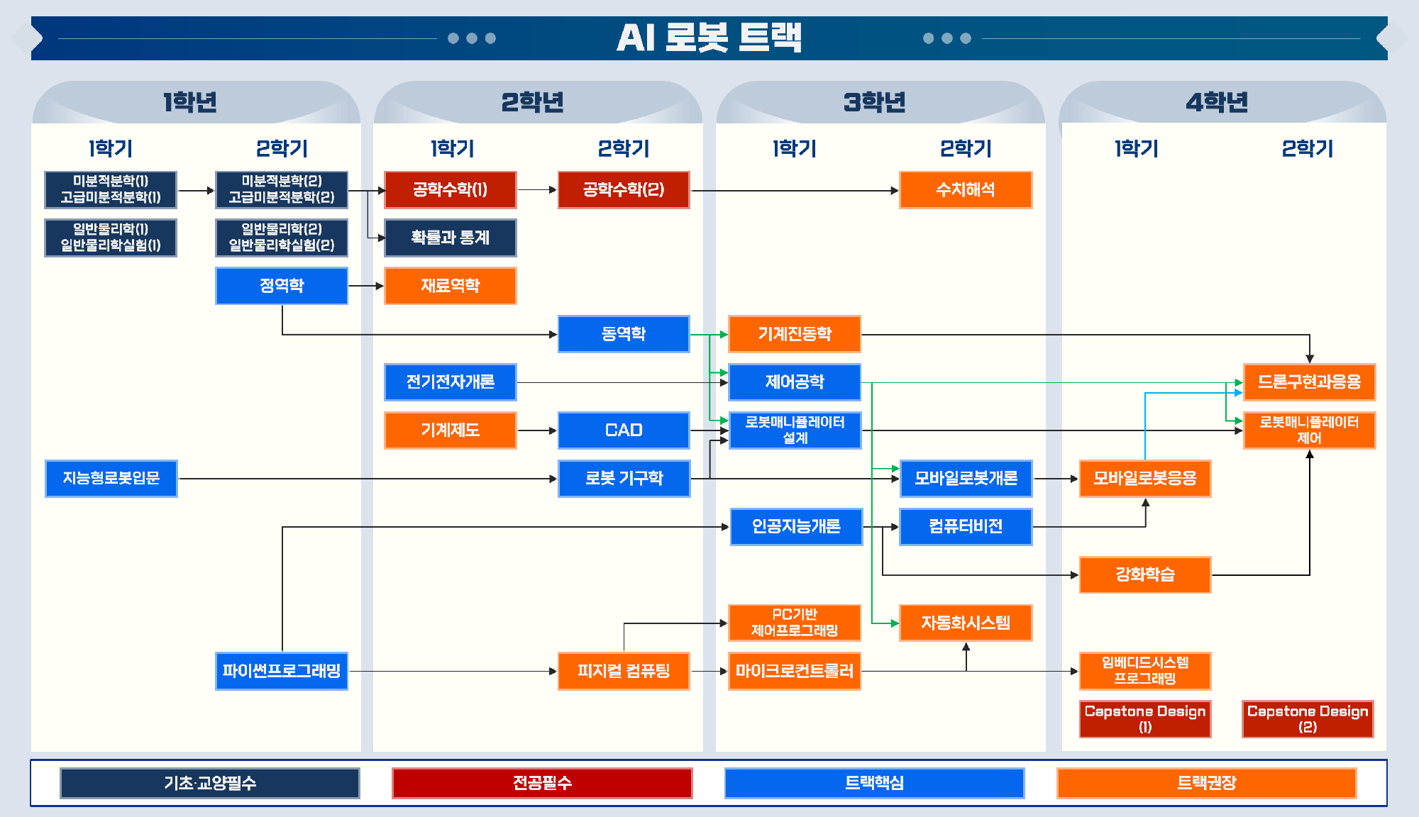 트랙별 교과목 연계도 (AI 로봇 트랙)