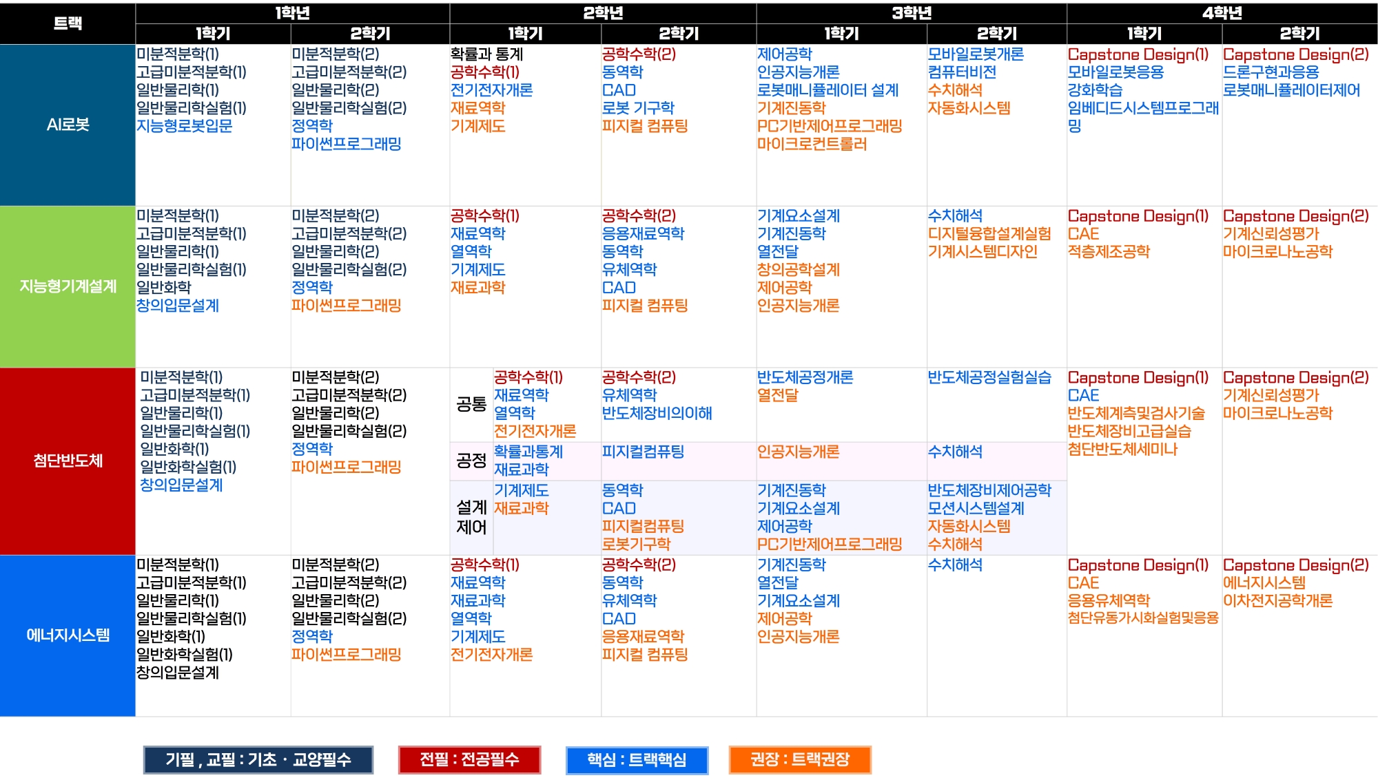 트랙별 핵심권장 교과목